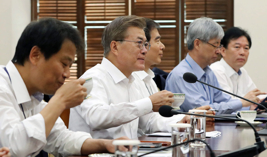 직전 박근혜 정부의 청와대에선 지시하는 대통령과 고개를 숙이고 받아 적는 수석·장관의 모습이 주로 전파를 탔다. 청와대 참모진과 격의 없이 티타임을 갖고 토론하는 문 대통령의 모습은 이와는 뚜렷하게 대비된다. 대선 때의 ‘광화문 대통령’이라는 상징적 슬로건에서 알 수 있듯 문 대통령은 앞으로도 ‘소통’에 최우선 방점을 둘 것으로 보인다.