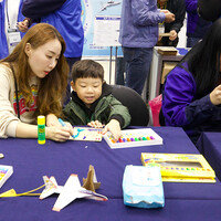 11월 1일 ‘제3회 2019 대한민국 스마트 국방 ICT 산업박람회’에서 관람객들이 항공모형 종이접기를 하고 있다. 10월 31일 경북 구미시 구미코에서 개막한 이번 박람회는 11월 2일까지 열린다.
