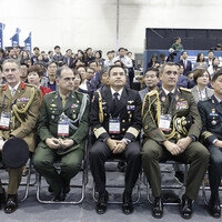 10월 31일 경북 구미시 구미코에서 열린 ‘제3회 2019 대한민국 스마트 국방 ICT 산업박람회’ 개막식에 참석한 주한 외국대사관 무관들. 박람회는 11월 2일까지 열린다.