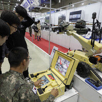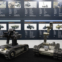 10월 31일 경북 구미시 구미코에서 열린 ‘제3회 2019 대한민국 스마트 국방 ICT 산업박람회’에서 한화디펜스가 선보인 전투용 로봇. 박람회는 11월 2일까지 열린다.