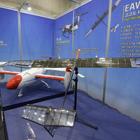 10월 31일 경북 구미시 구미코에서 열린 ‘제3회 2019 대한민국 스마트 국방 ICT 산업박람회’에서 한국항공우주연구원이 선보인 고고도 태양광 무인기(EAV-3). 박람회는 11월 2일까지 열린다.