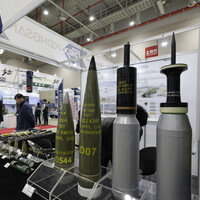 10월 31일 경북 구미시 구미코에서 열린 ‘제3회 2019 대한민국 스마트 국방 ICT 산업박람회’에서 풍산이 선보인 K-9 자주포탄과 전차포탄. 박람회는 11월 2일까지 열린다.