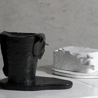 서울 종로구 동아미디어센터 1층. 동아일보 창간 100주년을 기념해 설치한 순백색 ‘한국의 상(床)’ 위에 도자 조형물이 놓여 있다. 김선미(52) 도예가의 ‘합(合)’이다. 작품을 구성하는 두 요소, 검고 긴 그릇과 희고 넓적한 …