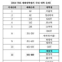 세종대학교(총장 배덕효)가 영국고등교육평가기관 THE가 발표한 ‘2019 THE 세계대학평가’에서 국내 11위를 차지했다. 지난해와 비교할 때 한 단계 상승한 결과다. THE 세계대학평가는 세계 86개국 대학을 대상으로 매년 평가를…