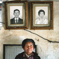 이름 밝히길 꺼리는, 혼자 사는 할머니. 뒤편에 걸려 있는 먼저 간 영감 사진이 늘 눈에 밟힌다고 했다.(왼쪽 사진) 높은벼루마을의 원경. 건너편 산허리쯤에서 찍었다.(오른쪽 사진) 박아소 할머니가 읍내 시장에서 얻어 온 생선 내장…