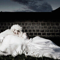 어깨를 훤히 드러낸 드레스를 입은 여인이 고궁의 돌담 앞에 누워 있다. 금발에 핏기 없이 하얀 피부, 파란 눈망울…. 서양 만화에서 볼 법한 외양이지만, 동양인임을 감추기 어렵다. 어린 생명을 관장하는 백의 관음보살이 관능적인 눈빛…