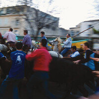 아침부터 밖이 소란해서 내다보니 발코니 아래 광장에서 사람들이 차단막을 설치하고 있다. 뱀처럼 구불구불한 길을 만드는데 소가 이곳으로 달리게 하려는 것이다. 차단막은 구경꾼들이 다치지 않게 하기 위한 것이리라. 이제 조금 있으면 저…