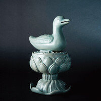청자압형유개연화형향로(靑瓷鴨形有蓋蓮花形香爐) 12세기 作12C비색을 보여주는 유물로서, 연봉모양의 향신에 오리모양의 뚜껑을 한 향로이다. 연잎의 세밀한 표현과 오리 발톱과 깃털 등의 양각, 음각 표현의 정밀함을 통해 고려청자의 절정…