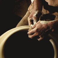 ▲아가리 모양을 잡는 것을 이곳 말로 ‘시욱 쓴다’고 한다. 천을 여러 겹 덧대 만든 물가죽으로 시욱 쓰는 정윤석 옹기장.1 손잡이와 뚜껑을 갖춘 작은 단지. 2 모양 만들기(성형)가 끝난 독은 음지에서 천천히 말린다. 몇 차례 돌…