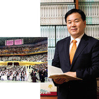 2월 12일 경기도 가평 세계평화통일가정연합 청심평화월드센터에서 ‘2014 천지인 참부모 천주 축복식’이 열렸다. ‘합동결혼식’으로 잘 알려진 이 행사에 50개국 2500여 쌍이 참여해 부부의 연을 맺었다(작은 사진). AFP 등 …