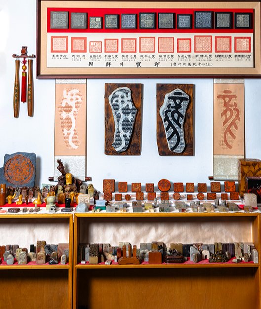 최병훈 명장의 공방 ‘여원전인방’에 전각 작품과 각종 인장이 전시돼 있다.