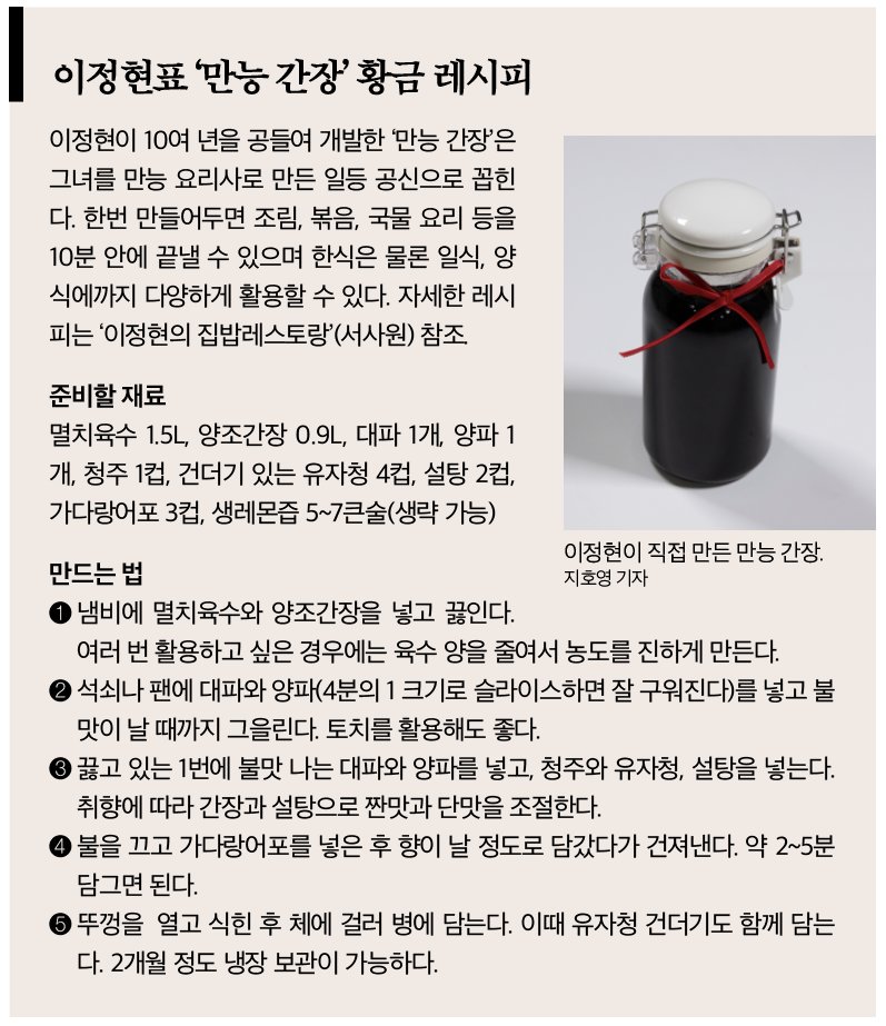 방송에서 화제가 된 ‘만능 간장’은 어떻게 탄생했나.“맛있는 집을 찾아다니며 먹어본 뒤 집에서 비슷하게 재현해 보는 게 취미였다. 만능 간장은 일본의 전통 소바에서 풍기는 가다랑어포 특유의 향과 직접 담근 유자청의 단맛을 조화시켜 만들었다. 시판 간장의 인공적인 맛이 아니라 유자의 상큼함과 가다랑어포의 깊은 감칠맛을 살린 게 비결이다.”