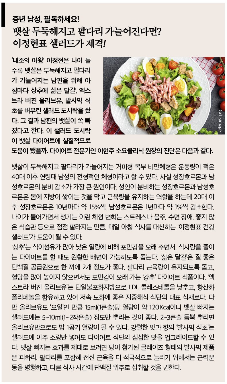 이정현은 1980년 서울에서 경찰 아버지와 전업주부 어머니 사이에서 5녀 중 막내로 태어났다. 연예계에 데뷔한 건 1996년 영화 ‘꽃잎’을 통해서다. 이 작품에서 연기 경험이 없는 10대 소녀라는 사실이 믿기지 않는 기량을 펼쳐 각종 영화제의 신인상을 휩쓸었다. 1999년에는 솔로 댄스 가수로 데뷔해 ‘와’라는 1집 앨범 타이틀곡으로 테크노 열풍을 일으켰다. 이후 중국을 오가며 한한령이 닥치기 전까지 10여 년간 대륙에서 가수 겸 배우로 큰 인기를 모았다. 2015년엔 영화 ‘성실한 나라의 앨리스’로 청룡영화제 여우주연상을 차지했다.히트곡도, 대표작도 많은 그녀의 다재다능함은 2019년 가정을 꾸린 후 더 빛을 발하고 있다. 그녀가 결혼하지 않았으면 예능 프로그램에 출연해 요리 솜씨를 뽐내는 일은 없었을는지 모른다. 그녀의 남편은 3세 연하의 정형외과 의사 박유정 씨. 큰딸 서아는 2022년, 작은딸 서우는 2024년에 태어났다. 스크린과 TV를 넘나들며 연예 활동을 하는 것만도 만만치 않은데 이정현은 두 아이와 남편 식사를 직접 만든다. 그녀가 요리한 음식은 건강에 좋은 식재료와 건강한 조리법의 앙상블이라 집 안에서든, 밖에서든 반응이 좋다. 요리 재능을 살려 ‘이정현의 집밥레스토랑’(2022)과 ‘이정현의 궁중 이유식’(2023)이라는 요리책을 냈고, 지난해에는 큰딸과 함께 ‘몽글몽글 숲속요리사’라는 요리 그림책을 선보이기도 했다. 방송을 통해 간간이 비치는 육아와 살림 솜씨도 수준급이라는 평이 자자하다. 가녀린 체구의 그녀가 매일 빡빡한 일정 속에서도 건강한 아름다움을 지켜내는 비결을 한 겹씩 벗겨보자.