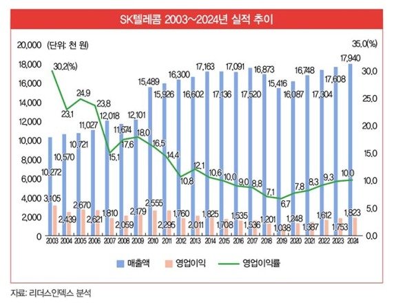 성장은 여기까지였다. 2014~2024년까지 10년간 매출이 크게 늘지 않았다. 영업이익률도 감소세다. 2002년 30.2%의 영업이익률을 자랑했지만, 이후 점점 하락해 2018년 이후 10% 이하로 떨어졌다. 2023년까지만 해도 영업이익률 9.96%에 머물다가 2024년 10.16%로 올랐다. 성장세이긴 하나 전성기의 영업이익률에 비하면 다소 낮은 수치다.영업이익률이 낮은 이유는 시장이 변한 데 있다. 데이터 기반의 이동통신 시장 초기는 황금기였다. 기술혁신에 따른 원가 하락이라는 공급 요인과 경쟁 도입 및 가입자 폭증이라는 수요 요인이 선순환 구조를 만들었다. 즉 품질은 좋아지면서도 원가는 줄어드는 디지털 기술혁신의 혜택을 누렸다. 소비자 소득 증가로 수요도 폭증했다.