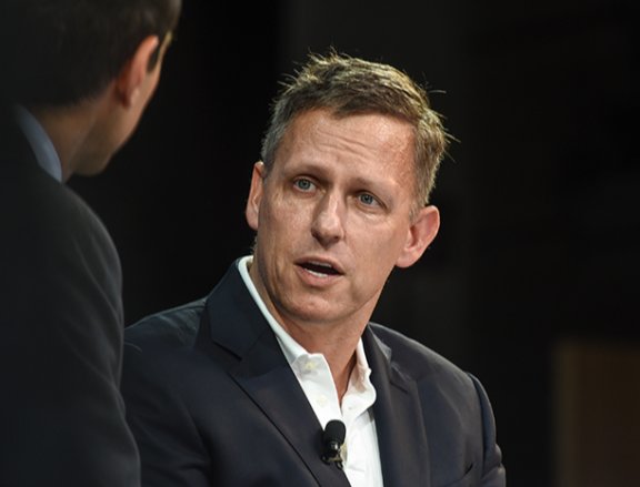 2018년 11월 1일(현지 시간) 미국 뉴욕에서 열린 ‘뉴욕타임스 딜북 콘퍼런스’에서 피터 틸 팔란티어 창업자가 연설하고 있다. Gettyimage