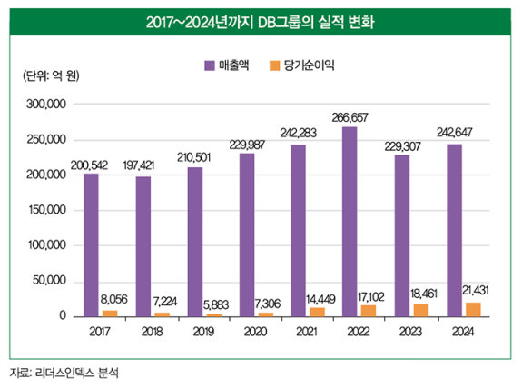 DB그룹은 금융 부문에 편중된 사업 포트폴리오 변화를 통한 신성장동력 확보와 지배구조 개편이라는 과제를 안고 있다. DB그룹은 제조업 부문의 축소로 그룹의 수익 구조가 DB손해보험, DB생명 등 금융 계열사에 과도하게 의존하고 있다. 캐시카우 역할을 하는 DB하이텍의 지속 성장과 더불어, 그룹 전체의 미래를 이끌어갈 새로운 성장 동력 발굴이 시급하다.