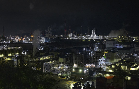 전망대 데크(deck)에 오르자 여수국가산업단지가 한눈에 들어왔다. 산단 군데군데 불빛 없이 어두컴컴한 곳이 눈에 들어왔다. 지난해 말 롯데케미칼 2공장이 문을 닫은 데 이어, 8월 8일 여천NCC 3공장까지 문을 닫았기 때문이었다. 석유화학 산업에 불어닥친 불황의 그림자가 여수산단 야경까지 바꿔놓고 있는 것이다.