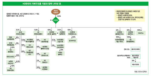 지배구조 개편으로 현대중공업 대주주인 정 이사장은 HD현대의 지배력을 더욱 강화하게 됐다. 지주사 전환 이전까지 정 이사장의 현대중공업 지분은 10.15%였으나 지주회사 전환 후 25.80%로 늘었다. 최상위 지배기업인 HD현대는 주요 자회사 지분을 30% 이상 확보하며 안정적 지주사 체제를 구축했다.