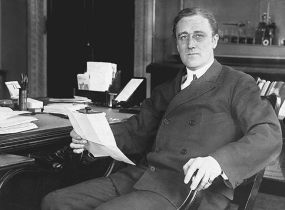 프랭클린 루스벨트 미국 대통령이 해군 차관보로 재직하던 1913년 당시 워싱턴 집무실 책상에 앉아 있는 모습. Gettyimage