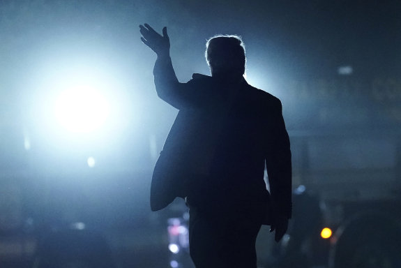 9월 20일 도널드 트럼프 미국 대통령이 버지니아 마운트버넌에서 열린 정치 후원 행사에 참석한 후 전용 헬기에 탑승하며 손을 흔들고 있다. AP 뉴시스