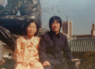 중앙대 입학식에서 처음 교복을 입고 어머니와 기념 촬영한 모습. 동아DB