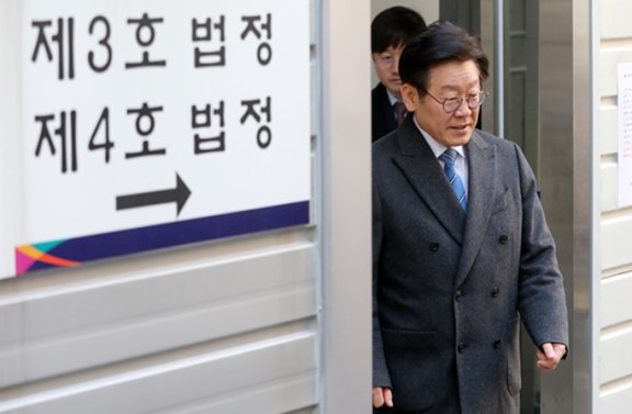 2019년 1월 10일 공직선거법 위반 등 혐의로 기소된 이재명 당시 경기지사가 경기 성남시 수정구 수원지방법원 성남지원에서 열린 첫 공판을 마친 후 법정을 나서고 있다. 그는 친형 고 이재선 씨 강제 입원, 검사 사칭, 대장동 허위 선거 공보물 사건과 관련 직권남용과 공직선거법 위반 혐의로 불구속 기소됐다. 뉴스1