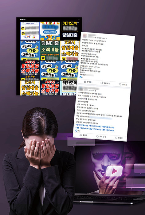 올해 초 공공기관 계약직으로 취업한 A씨의 가슴이 ‘쿵’ 하고 내려앉았다. 생활비가 부족해 미등록 비대면 대부업체에서 100만 원을 빌리면서, 열흘마다 10만 원의 이자를 내기로 한 약속을 20일 넘게 지키지 못한 것이 마음에 걸려서다. 대부업자는 전화로 온갖 욕설을 퍼붓고 “인스타그램에 네가 빚진 사실을 공개하겠다”고 협박했다. A씨는 기자에게 “눈앞이 캄캄했다”고 당시의 참담한 심정을 털어놨다.