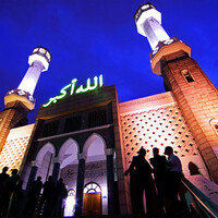 서울 용산구 이태원동 이슬람 사원(Mosque)의 야경. 무슬림은 금요일에 예배를 올린다.사원에서 기도하는 사람들.3 신도들이 사우디아라비아의 카이바 신전을 향해 절하고 있다. 독특한 양식의 이슬람 건축물들.6 이슬람 학교.히잡을…