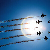 ▲ 우리나라 공군 특수비행팀 블랙이글이 화려한 에어쇼를 선보였다.1 헝가리 졸탄 베레즈의 곡예 비행.2 우리 공군이 고공 낙하 비행을 선보였다.3 불시착한 조종사를 구출하는 탐색구조 시범.4 관람객이 직접 행글라이더를 타볼 수 있다…